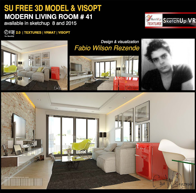 Beautiful free sketchup model modern living room #41 - Vray Visopt